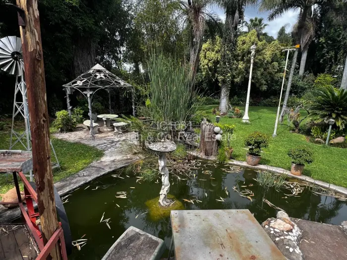 Two water fountains and fish ponds, adding charm and tranquillity